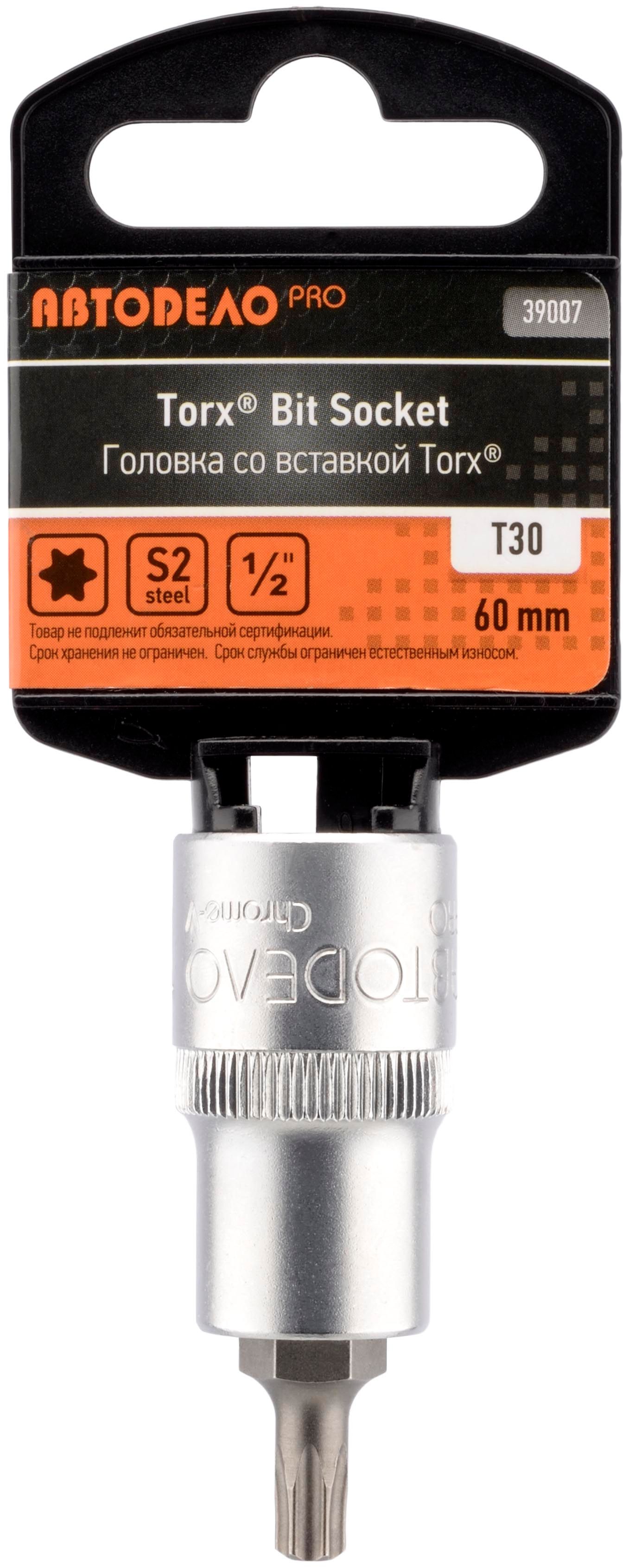 Головка торцевая TORX Т30 (1/2") 60 мм со вставкой АвтоDело PRO (39007) (160) АвтоДело
