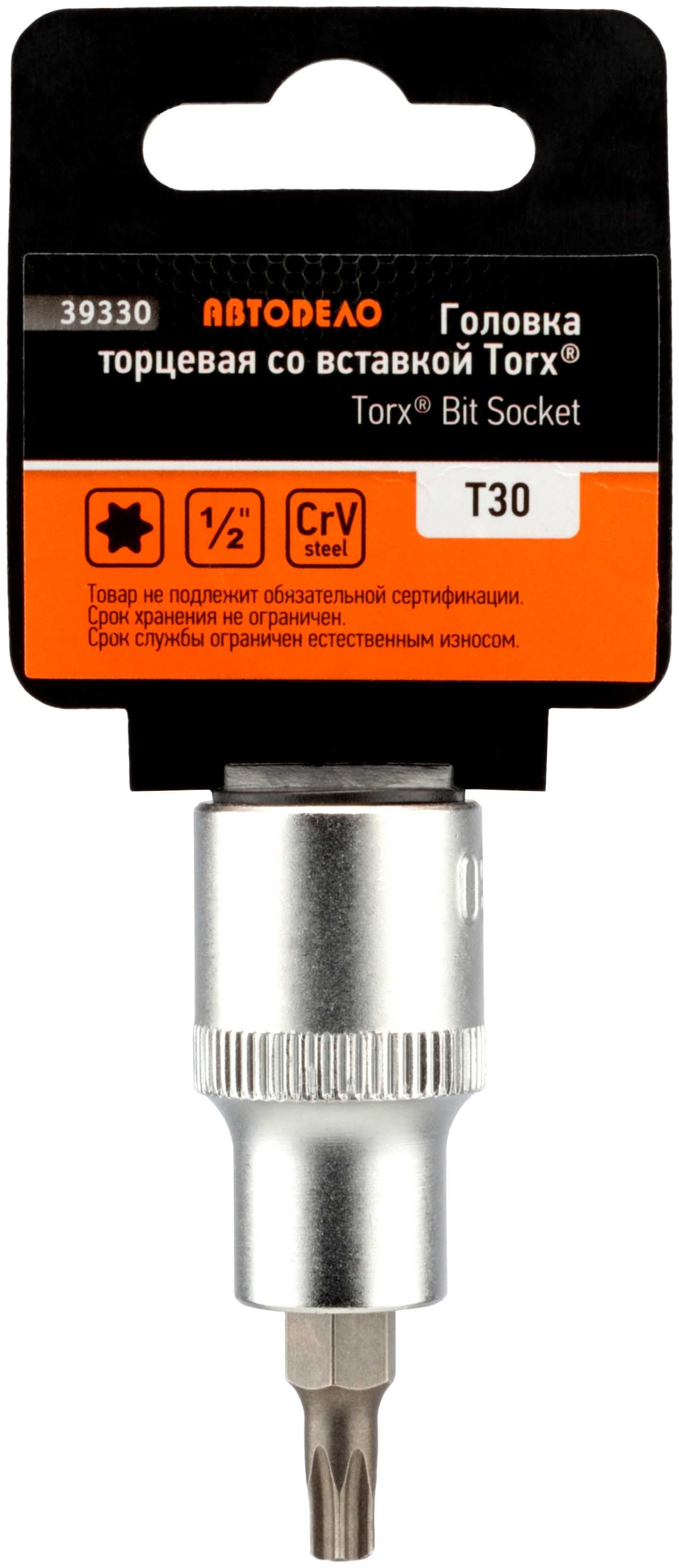 Головка торцевая TORX Т30 (1/2") 55 мм со вставкой АвтоDело (39330) АвтоДело