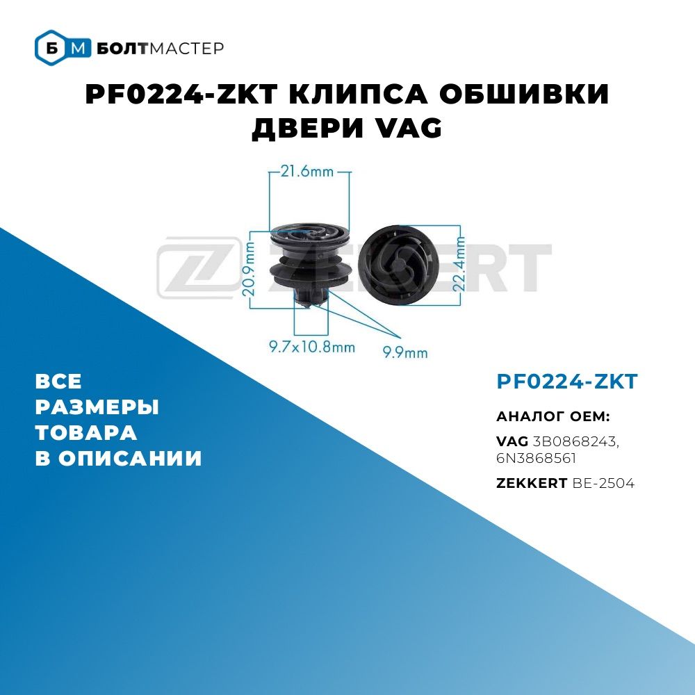 PF0224-ZKT Клипса обшивки двери VAG БолтМастер