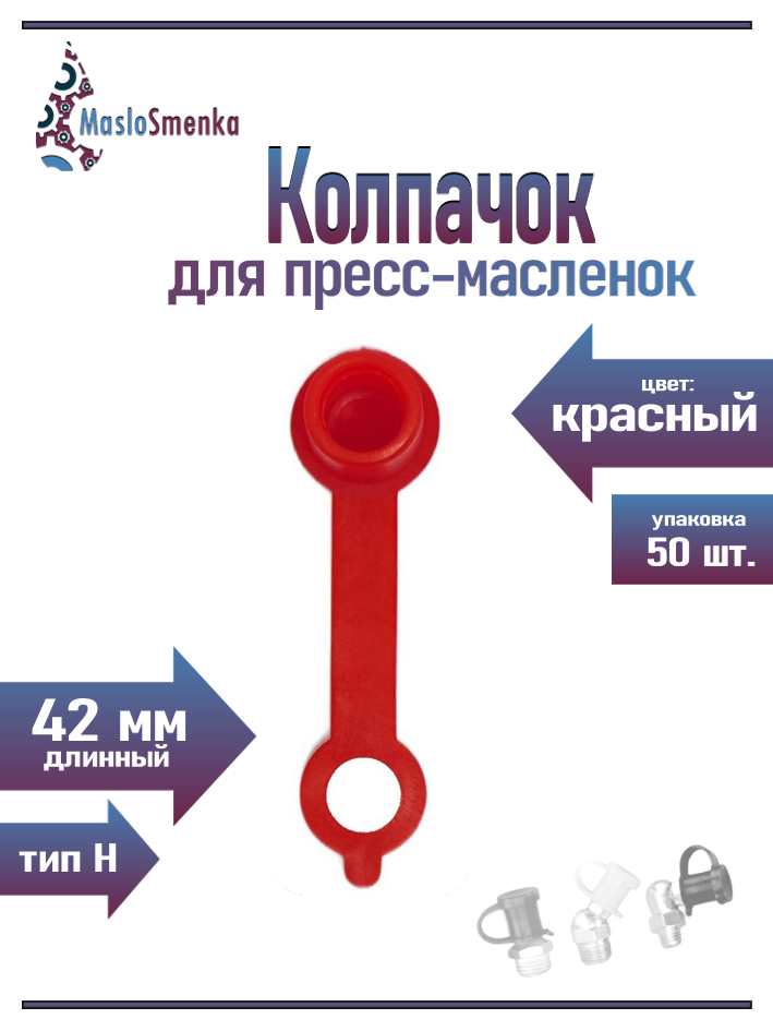 Колпачок для пресс-масленок "H" 42мм, компл. 50шт., красный MasloSmenka 011001-50 MasloSmenka