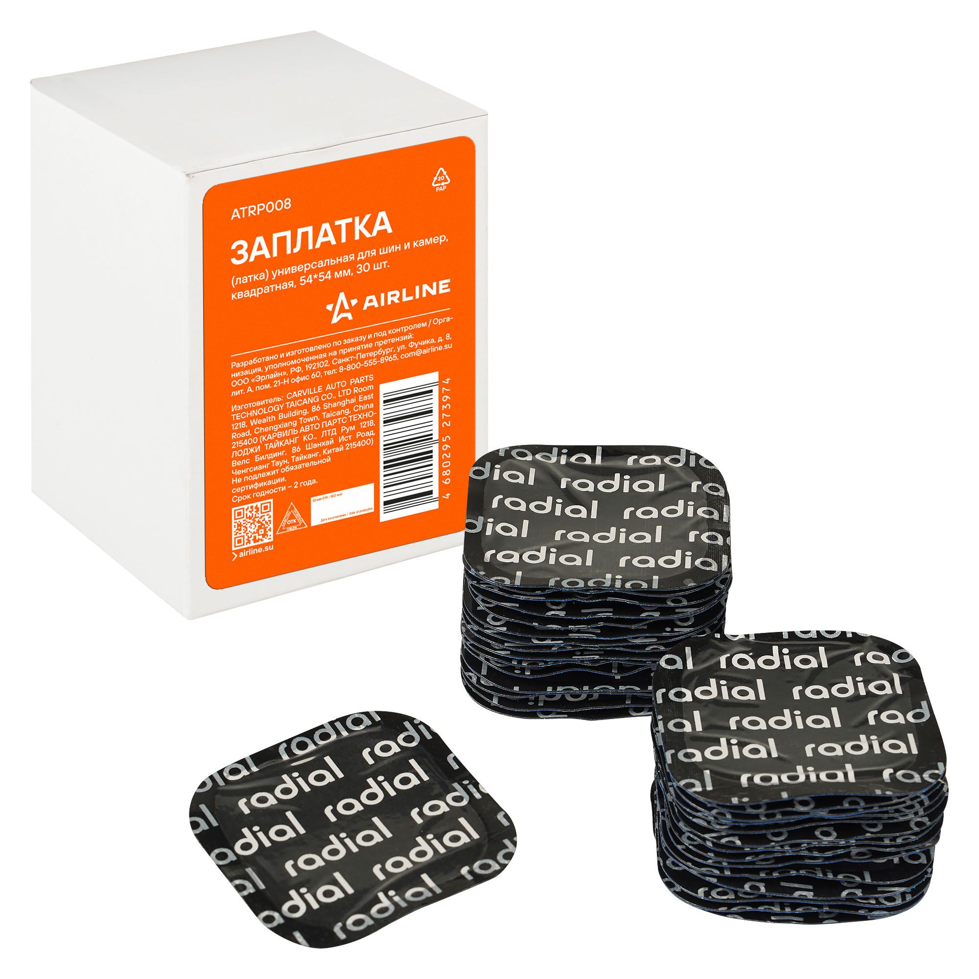 Заплата (латка) универсальная для шин и камер, квадратная, 45*45 мм, 45 шт. Airline