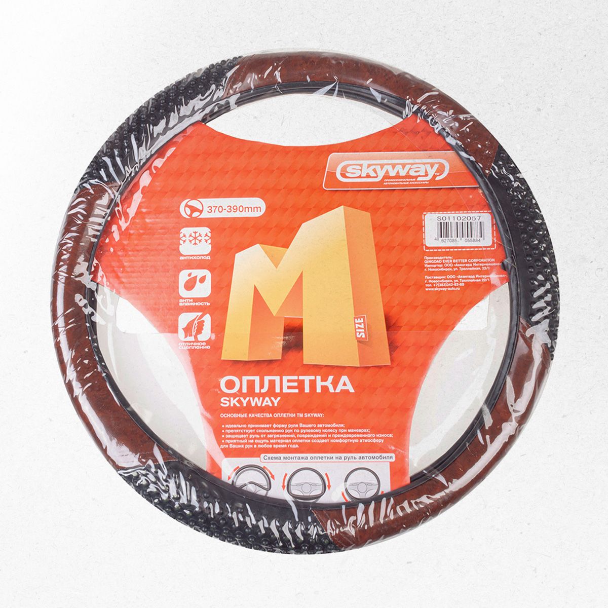 Оплетка на руль (M) 37-39 см. под дерево кожа, 2 подушки SKYWAY (S01102002) Skyway