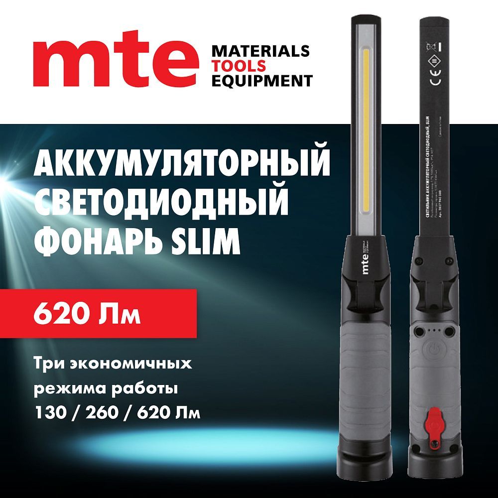 Аккумуляторный светодиодный фонарь MTE LED slim USB Инструмент
