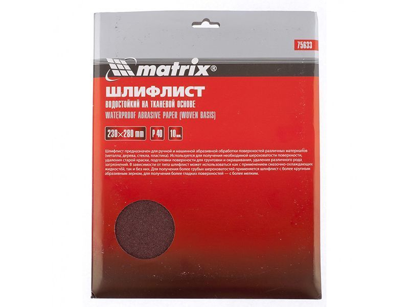 Шлифлист на тканевой основе, P 40, 230 х 280 мм, 10 шт., водостойкий// Matrix Matrix