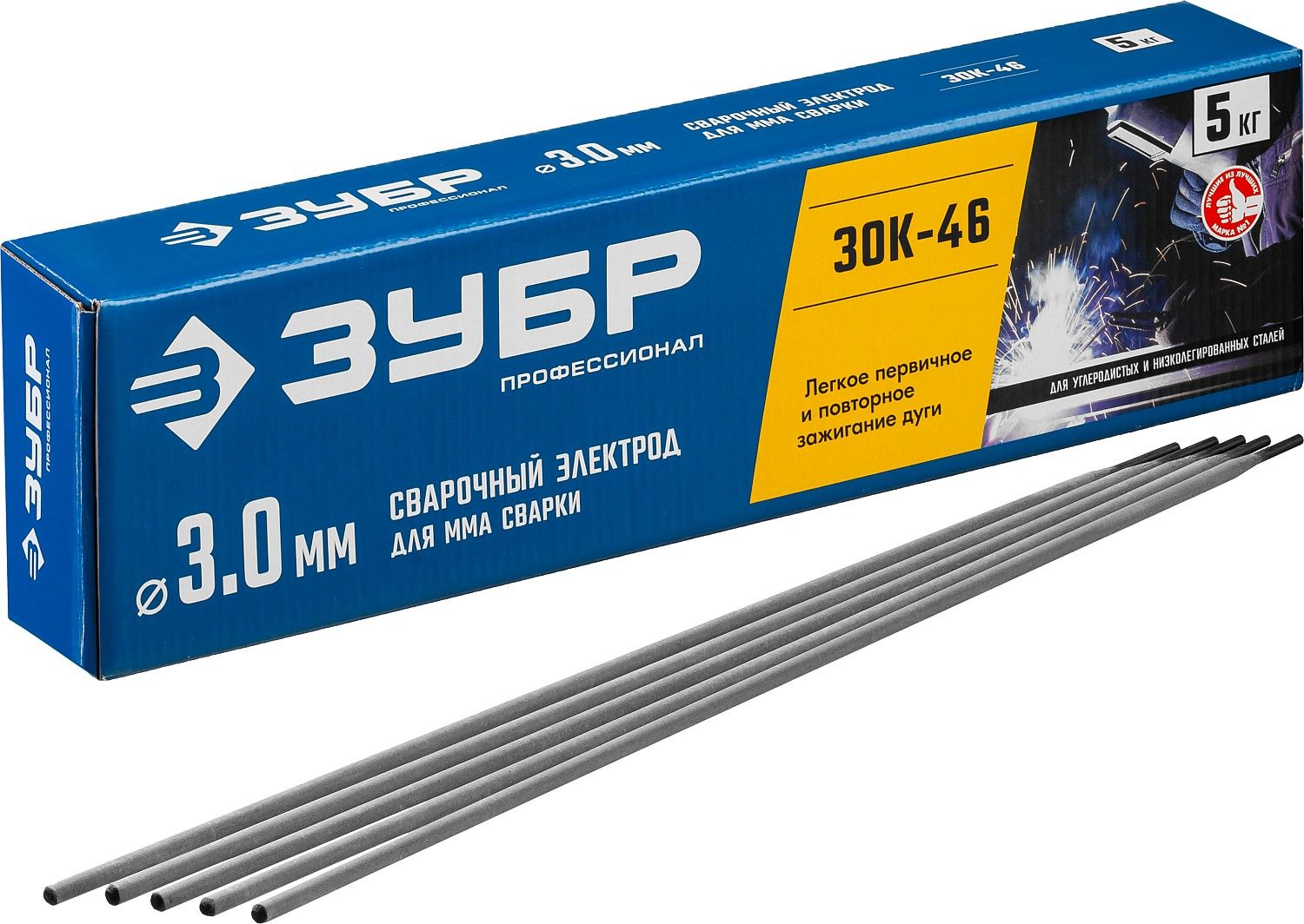 ЗУБР Д 3.0 х 350 мм, 5 кг в коробке, ЗОК-46 рутил-целлюлозный, электрод сварочный, Профессионал (40035-3.0) Зубр