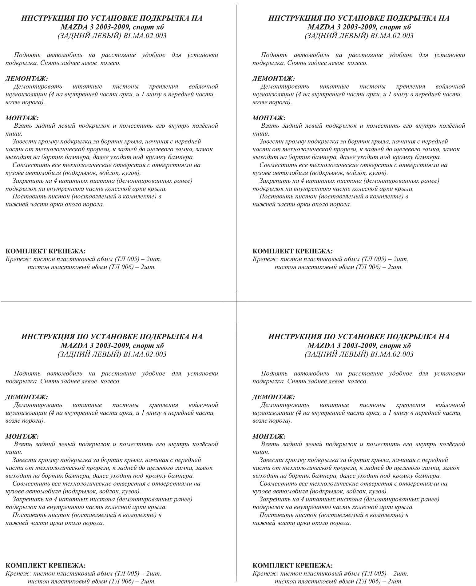 Санкт-Петербург | 9140 | Norplast | BI5504 | Коврик багажника (полиэтилен) Mazda 3 HB (2003-2009) | 4 шт | 9 дн | 5 698 ₸ | |