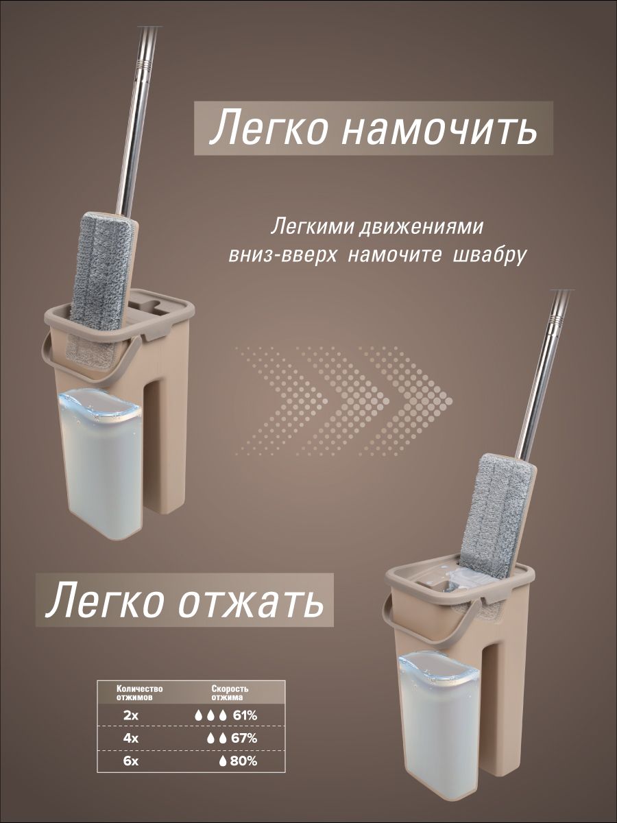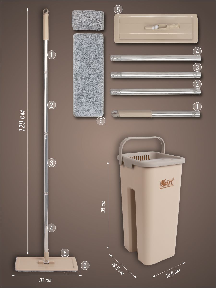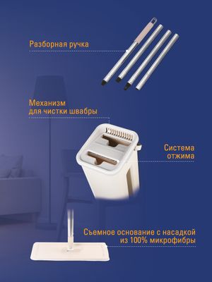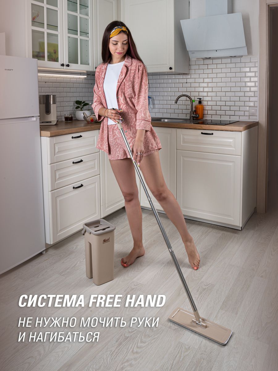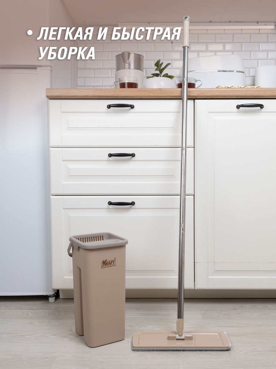 Система для уборки KRAFT Flat Mop (швабра, ведро с отжимом, 2 насадки)