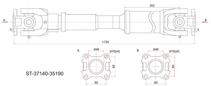 Вал карданный средний 818мм (квадратный фланец) без делителя