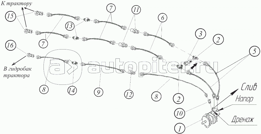 Компоненты гидросистемы управления «шнек – подъем/опускание крыльев»