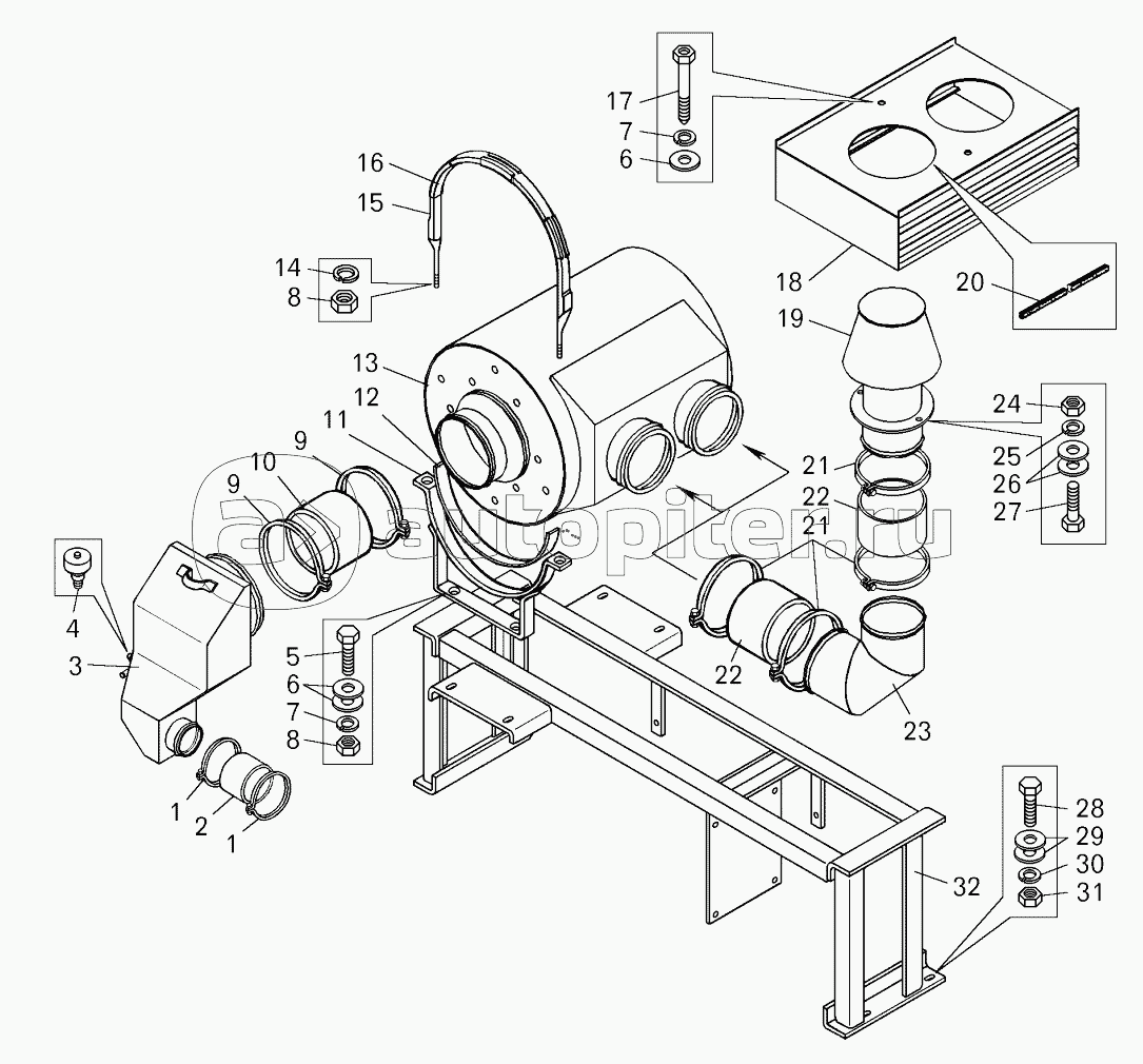 Установка воздушного фильтра (7822-1100005);Mounting of air filter onto Dozer BELAZ-7823