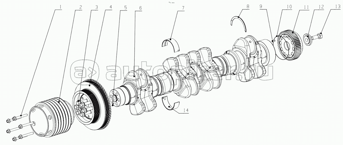 Cylinder BlockCrankshaft Vibration Damper AssemblyCamshaft AssemblyIntake & Exhaust Manifold PartsOil Sump AssemblyOil Cooler AssemblyFuel FilterFuel InjectionTurbochargerAir CoolerThermostat, Water PumpPower Output AssemblyGenerator, Alternator, StarterMonitoring System AssemblyControlling System AssemblyName Plate